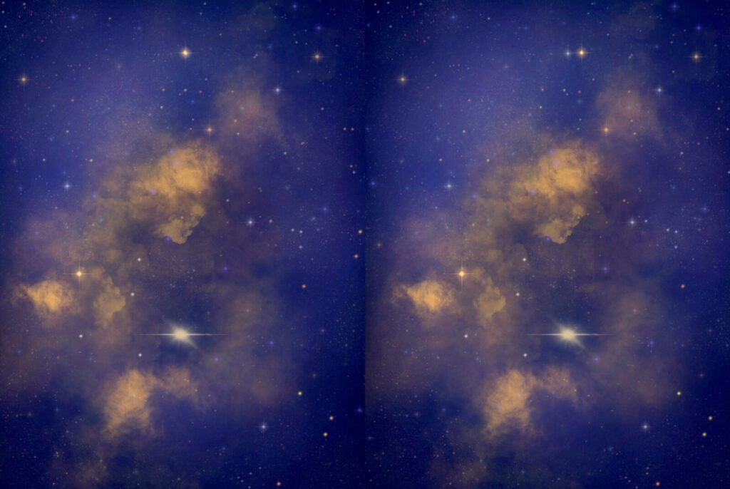 Ready for a journey into deep space? Space and galaxies have always fascinated me, so when the book Cosmic Clouds 3D by David Eicher and Brian May was released in 2020, I got the idea of converting my traditional space paintings into 3D by using a depthmap. But I realised that the result was far from satisfying. So I switched from canvas to digital artwork, which has the advantage of being easier to convert into a stereoscopic drawing than a traditional one.
