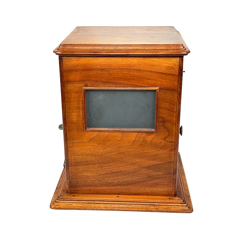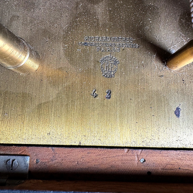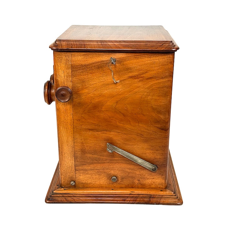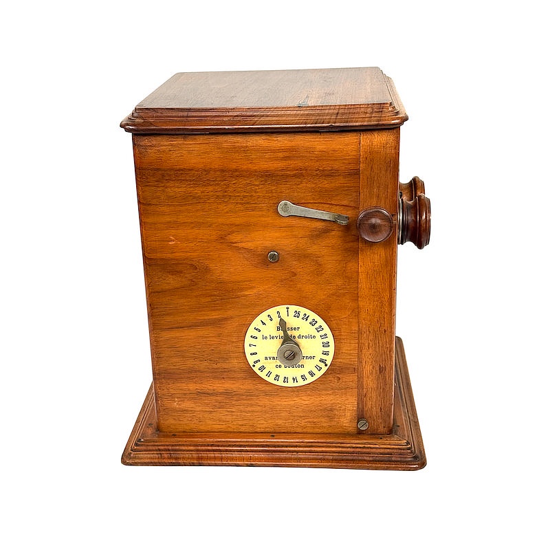 The ‘Stéréo-Classeur’ was available in two standard versions, one in waxed walnut and one in polished mahogany. The viewer illustrated has the serial number 42 and is therefore one of first ever produced. There are some differences in detail from the final design, which was already finalized in the first year of production.