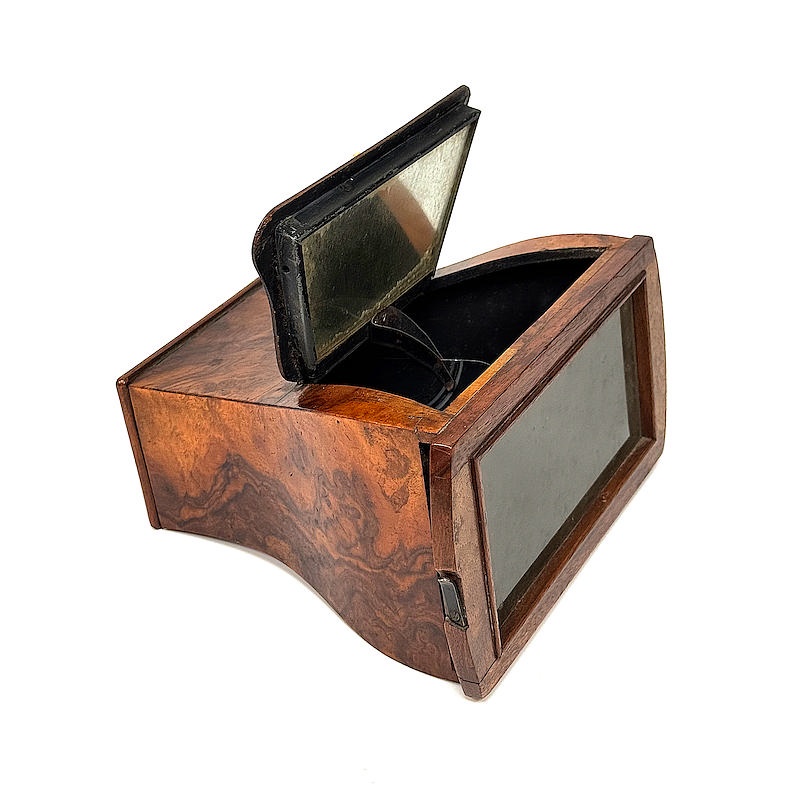 Claudet designed several improvements to the stereoscope. These were recorded in two patents containing different technical ideas. His second patent, no. 515, describes curved side panels for the Brewster-type stereoscope intended to reduce internal reflections.